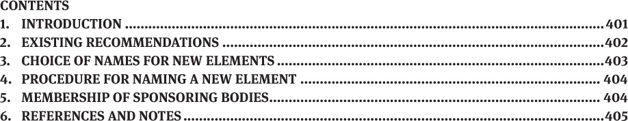 As early as 1782 it was stated by Guyton de Morveau that, in the interest of science, it was necessary to have “a constant method of denomination, which helps the intelligence and relieves the memory” [1]. Ideally, a chemical element or a compound should have a unique name because the proliferation of names for the same substance can lead to confusion.