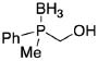 [21] Characterization of (RP)-4b: To the solution of (SP)-3b (0.27 g) in freshly distilled THF (1 mL) was slowly added the solution of BH3 in THF (1 M, 6 mL, 6 equiv.) at 0°C and under stirring conditions. The reaction mixture was allowed to warm at room temperature for 48 h. The 31P NMR analysis shown a mixture of 4b and 5a in ratio of 3.2/1. The obtained solution was evaporated under reduced pressure and the resulting oil was quenched with saturated NH4Cl aqueous solution and the product was extracted with CH2Cl2 (3×10 mL). The combined organic layers were dried over anhydrous Na2SO4 and the solvents were evaporated under reduced pressure to give crude oil product, which was purified by chromatography on the silica gel column using AcOEt/n-hexane (1:9) as eluent. Yield (54.1%). 1H NMR (298 K, 400.132 MHz, CDCl3, ppm): δ 7.61 (m, 2H, JHH = 2.0, 7.6 Hz, JHP = 10.8 Hz, =CH-, Ph), 7.55 (m, 1H, JHH = 1.2, 7.2 Hz, JHP =1.2 Hz, =CH-, Ph), 7.46 (m, 2H, JHH = 1.4, 7.6 Hz, JHP = 2.4 Hz, =CH-, Ph), 4.05 (m, 1H, JHH = 4.4 H, JHP = n.d, >CH-OP), 4.11–4.0 (m, 2H, >CH2, PCH2OH), 2.23 (dm, 1H, JHH = 12.0 Hz, >CH2), 1.90 (br, -OH), 1.77 (md, 1H, JHH = 2.8, 6.8 Hz, >CH-), 1.62 (m, 2H, >CH2), 1.44 (m, 1H, >CH-), 1.32 (tt, 1H, JHH = 2.8, 10.8 Hz, >CH-), 1.12 (q, 1H, JHH = 12.0 Hz, >CH2), 0.92 (m, 1H, >CH2), 0.92 (d, 3H, JHH = 6.4 Hz, -CH3), 0.77 (d, 3H, JHH = 6.8 Hz, -CH3), 0.84 (m, 1H, >CH2), 0.79 (q, 3H, JHP = 93.6 Hz, BH3), 0.47 (d, 3H, JHH = 6.8 Hz, -CH3). 13C{1H} NMR (300 K, 100.623 MHz, CDCl3, ppm): δ 132.54 (d, 1C, JCP = 2.2 Hz, =CH-, Ph), 131.55 (d, 2C, JCP = 10.3 Hz, =CH-, Ph), 129.75 (d, 1C, JCP = 61.6 Hz, =C<, Ph), 128.84 (d, 2C, JCP = 10.3 Hz, =CH-, Ph), 80.61 (d, 1C, JCP = 4.4 Hz, >CH-OP), 63.78 (d, 1C, JCP = 49.3 Hz, >CH2, -CH2P), 49.02 (d, 1C; JCP = 5.1 Hz, >CH-), 43.71 (s, 1C, >CH2), 34.27 (s, 1C, >CH2), 31.74 (s, >CH-), 25.73 (s, 1C, >CH-), 22.94 (s, 1C, >CH2), 22.32 (s, 1C, -CH3), 21.16 (s, -CH3), 15.55 (s, -CH3). 31P{1H} NMR (300 K, 161.984 MHz, CDCl3, ppm): δ 106.16 (q, 1P, JPB = 54.8 Hz). 11B{1H} NMR (300 K, 128.378 MHz, CDCl3, ppm): δ –42.76 (d, 1B, JBP = 62.8 Hz). HRMS (EI+) calcd. for C17H30BO2P [M + Na]+ 331.1972, found 331.1971. HPLC analysis on Chiralpak IA column with a UV detector at λ = 254 nm, flow rate = 1 mL/min, eluent = hexane/ethanol (98/2), Rt (min)= 5.59 for SP(+) and 7.11 for RP(-); [α]D25 = –131.5 (c= 0.0048 in CHCl3) for RP(-).Search in Google Scholar