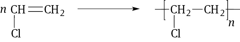 The reaction involving polymerization of a monomer such as vinyl chloride (chloroethene) is generally depicted as