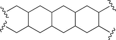 A 1997 IUPAC document covers “Source-based Nomenclature for Non-linear Macromolecules and Macromolecular Assemblies”, such as branched, comb, cyclic, graft, network, and star polymers, as well as polymer assemblies, such as interpenetrating polymer networks, polymer blends, and polymer-polymer complexes [1], [11]. The polymers in these classes, together with their connectives, are given in Table 4, while examples of their use are shown in Table 5. Note that the terms shown may be used as connectives or prefixes to designate the features present. As before, the connective or prefix is italicized, as they describe the structure rather than the chemical constituents.