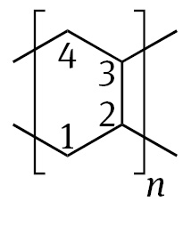 bThis assumes polymerization of buta-1,3-diene in the ‘-1,4-’ mode, for which the CRU is usually written —[—CH2—CH=CH—CH2—]n—. This is correct, but not the preferred CRU, which is as shown in the Table. Similarly, the preferred CRU for isoprene polymerized in the ‘-1,4-’ mode is —[—C(CH3)=CH—CH2—CH2—]n— and named poly(1-methylbut-1-ene-1,4-diyl).