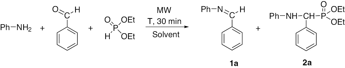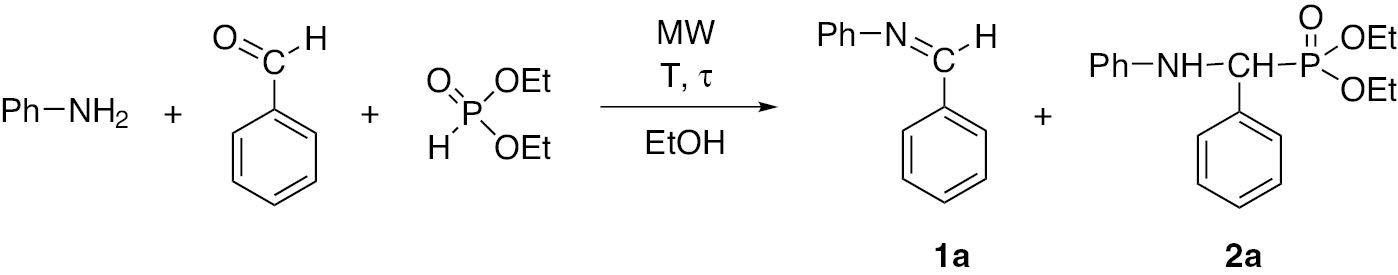 Kabachnik-Fields reaction of aniline with benzaldehyde and diethyl phosphite in a batch MW reactor.