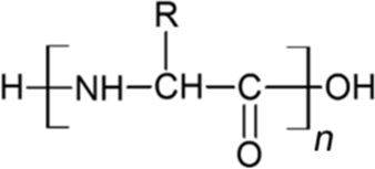 It is not necessary for the multiple units to be identical: for example, a polypeptide is a macromolecule described by the repeating structure below, where R may be any of a large number of different groups.