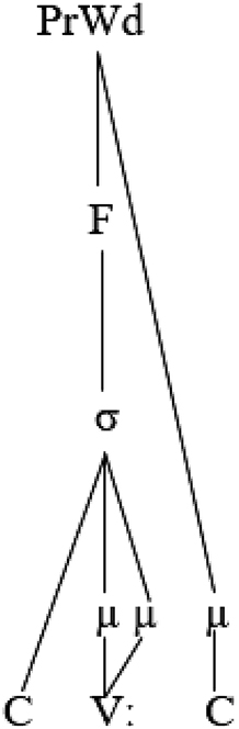 Kiparsky (2003) posited that a semisyllable skipped the syllable node and was linked directly to the prosodic word, as shown in the representation below: