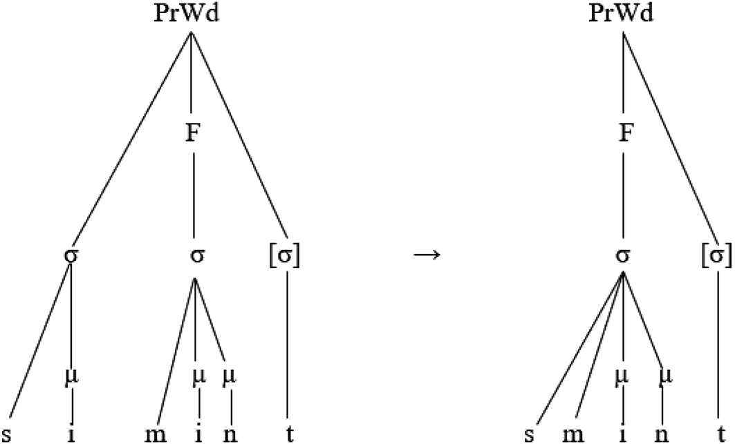 /siµmiµnt/→ [(ˈsmiµnµ).t]-Step 2.