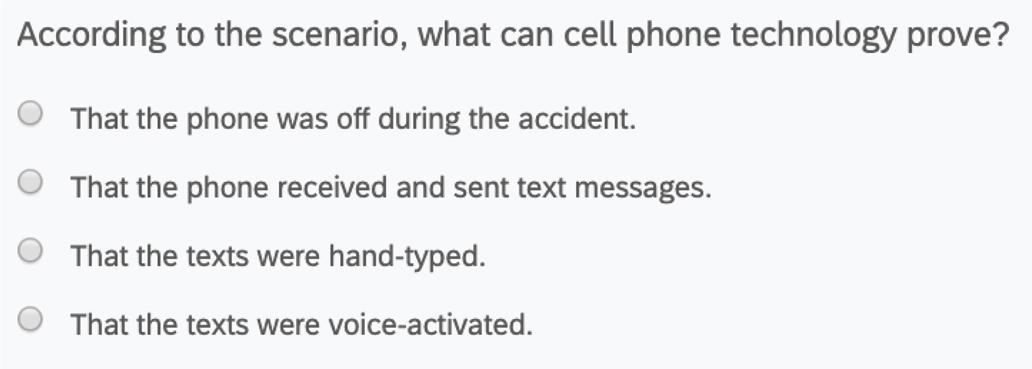 While it is legal to send texts on your cell phone in hands-free mode, it is not legal to hand-type a text while driving. The cell phone technology can demonstrate that you received and sent text messages at the time of the accident, but it cannot establish whether the texts were hand-typed or voice-activated. However, a Fed-Ex delivery employee was in the vicinity during the accident and remembers your head was down with your gaze in your lap at the time of the incident.