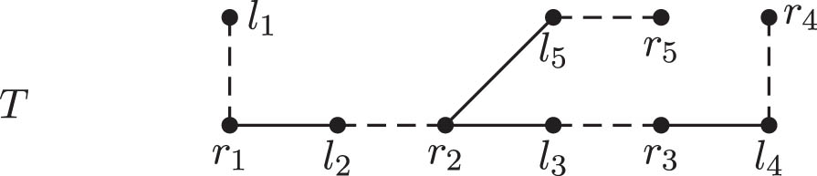 Here, the dashed edges are the matching edges. Clearly, L = { l 1 , , l 5 } and R = { r 1 , , r 5 } is the standard vertex bipartition. The bipartite distance matrix B and the bipartite Laplacian matrix L are