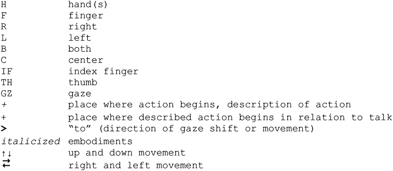 TRANSCRIPTION CONVENTIONS FOR NONVOCAL DETAILSAdapted from mondada (2016)