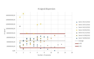 The use of an IS offers several benefits: First, it ensures reproducibility by allowing us to “condition” or equilibrate the analytical system with matrix injections before starting the main analytical run. Second, it provides information necessary for calculating technical and analytical precision. Lastly, it corrects signal variations both within and between analytical runs or batch analyses.