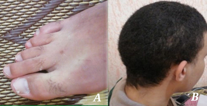 A meticulous reexamination of the patient revealed peeling of the fingertips (Supplementary Figure 4A) and sparse hair (Supplementary Figure 4B), classic symptoms of biotin deficiency. The patient’s Biotinidase activity was low at 1.4 IU/L (normal range >3.5 IU/L). Despite improvement in his general condition after biotin supplementation, the mental retardation remained irreversible.