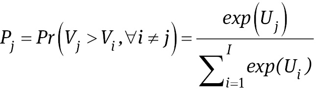 Die Nutzenfunktion besteht aus einem deterministischen Teil, U, und einer Zufallskomponente ϵj. Der deterministische Teil hat die Form