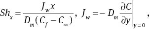 The local Nusselt number Nux, local Sherwood number Shx, and skin friction coefficient