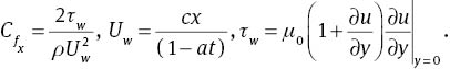 Values of the skin friction coefficient