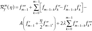 and when p moves from 0 to 1, then f(η, p), θ(η, p), and ϕ(η, p) approach f0(η), θ0(η), and ϕ0(η) to f(η), θ(η), and ϕ(η). Now f, θ, and ϕ in Taylor’s series can be written as follows: