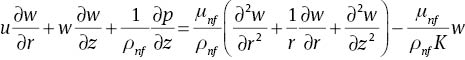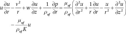 where σu is the tangential momentum accommodation coefficient, σT is the thermal accommodation coefficient, λ0 is the molecular mean free path, and β is the specific heat ratio, T is the temperature of the nanofluid, and T∞ denotes the temperature of the ambient nanofluid, K is the Darcy permeability, the pressure is P, and the pressure of the ambient nanofluid is P∞. Moreover, μnf and αnf are the dynamic viscosity and thermal diffusivity of the nanofluid, respectively, and ρnf is the density of the nanofluid. These are defined as