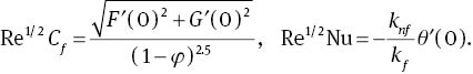 The skin friction coefficient Cf and the Nusselt number Nu are physical quantities which are introduced as