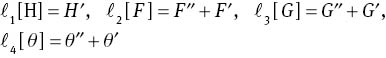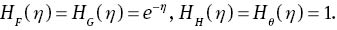 where hH, hF, hG, and hθ denote the auxiliary nonzero parameters and HH(η), HF(η), HG(η), and Hθ(η) are the auxiliary functions.