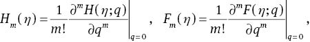 Expanding H(η;q), F(η;q), G(η;q), and θ(η;q) into Taylor series at q=0, as
