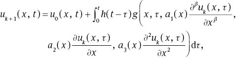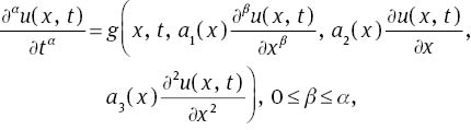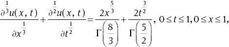where ∂α/∂tα and ∂β/∂xβ are fractional derivatives of the Caputo sense, ai(x) for i=0, …, 3 and q(x, t) are known continuous functions and u(x, t) is the unknown function. The analytic results on existence and uniqueness of solutions to fractional differential equations have been investigated by many authors, see, say for example [14]. Uddin and Haq [15] used radial basis functions for the solution of (1) with constant coefficients. Also, Garrappa and Popolizio [16] used the matrix functions for solving this problem. We construct the solution of problem (1–3) using the reconstruction of variational iteration method (RVIM). The RVIM was first suggested by Hesameddini and Latifizadeh for solving ordinary differential equations (ODE) [17]. In this work, we extend this method to solve FPDEs. It does not only simplify the problem but also speeds up the computation. Our method contains an iterative formula that can provide rapidly convergent successive approximations of the exact solution if such a closed-form solution exists. The rest of this article is as follows. In Section 2, some preliminaries are presented that will be used in later sections. In Section 3, the method is discussed. In Section 4, study on the convergence of this method is illustrated. Section 5 is devoted to numerical experiments, and the results are compared with the exact solutions and some previous works. Section 6 is the conclusion.
