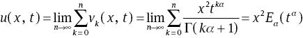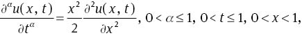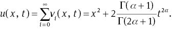 The exact solution of this problem is u(x, t) = x2 + 2(Γ(α + 1)/Γ(2α+1))t2α [21, 22].