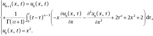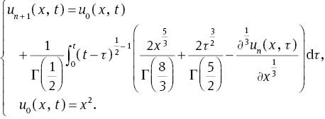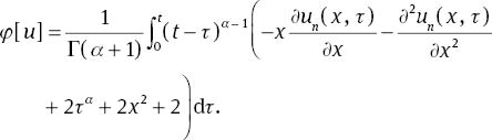 where u0(x, t)=x2 and un(x, t) indicate the nth approximation of u(x, t). So, φ[u] is defined as