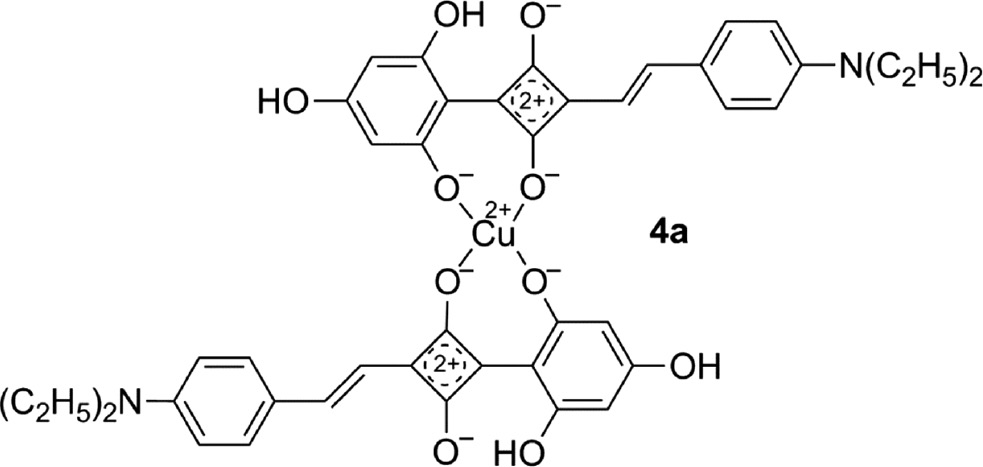 Whereas a large number of squaraines 2 and 3 were synthesized, only a single copper complex 4a [72] of a 1-aryl-3-styrylsquaraine (4) has been described and 1,3-distyrylsquaraines (5) were only included in theoretical studies [73].