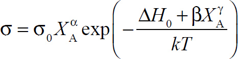 where σ0 is the pre-exponential factor; α, β, and γ are constants; ΔH0 is the activation enthalpy at very small values of XA; k is the Boltzmann constant; and T is the temperature. The present results suggest that the granite with various chemical compositions is unable to account for the high conductivity anomalies under stable mid- to lower-crust and southern Tibet.